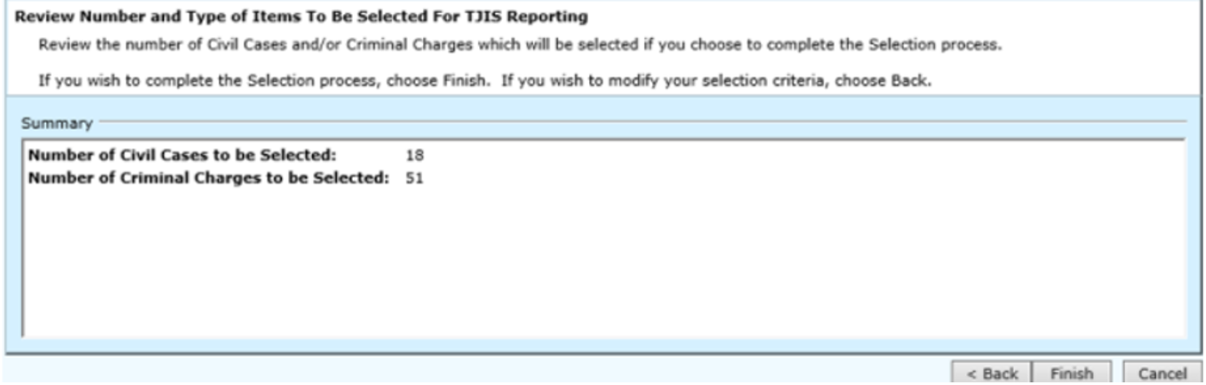 Review the number of Civil Cases and/or Criminal Charges to be selected.