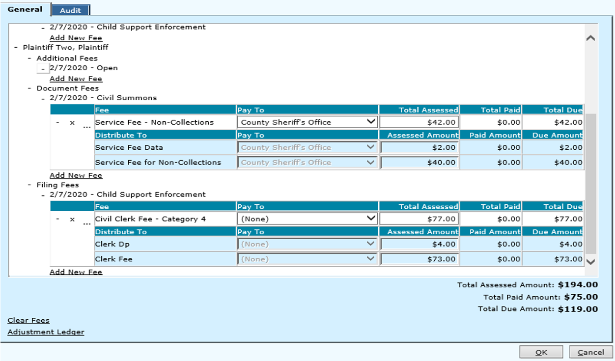 Expand the fees (…) apply money to the appropriate fees (clerk & service)