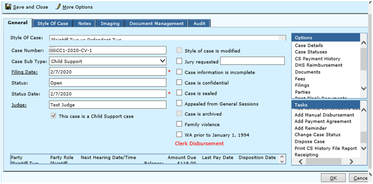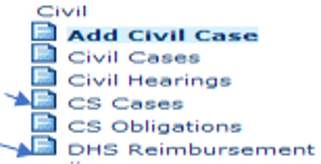 Search for Child Support case using “Civil Cases” or “CS Cases” option from the main menu Civil folder.