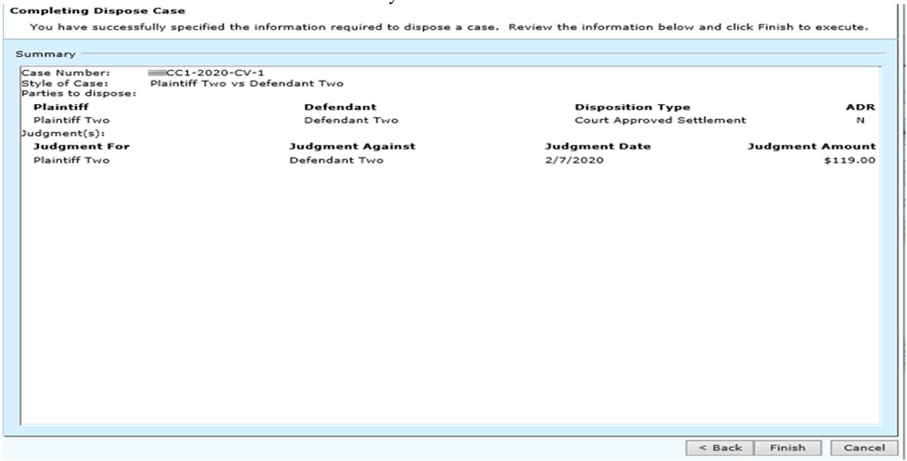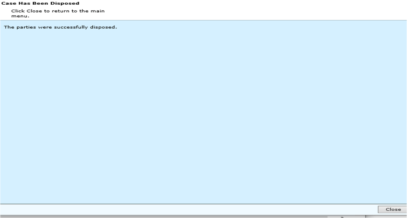 The completing dispose case screen will appear. Verify information and click Finish to save.