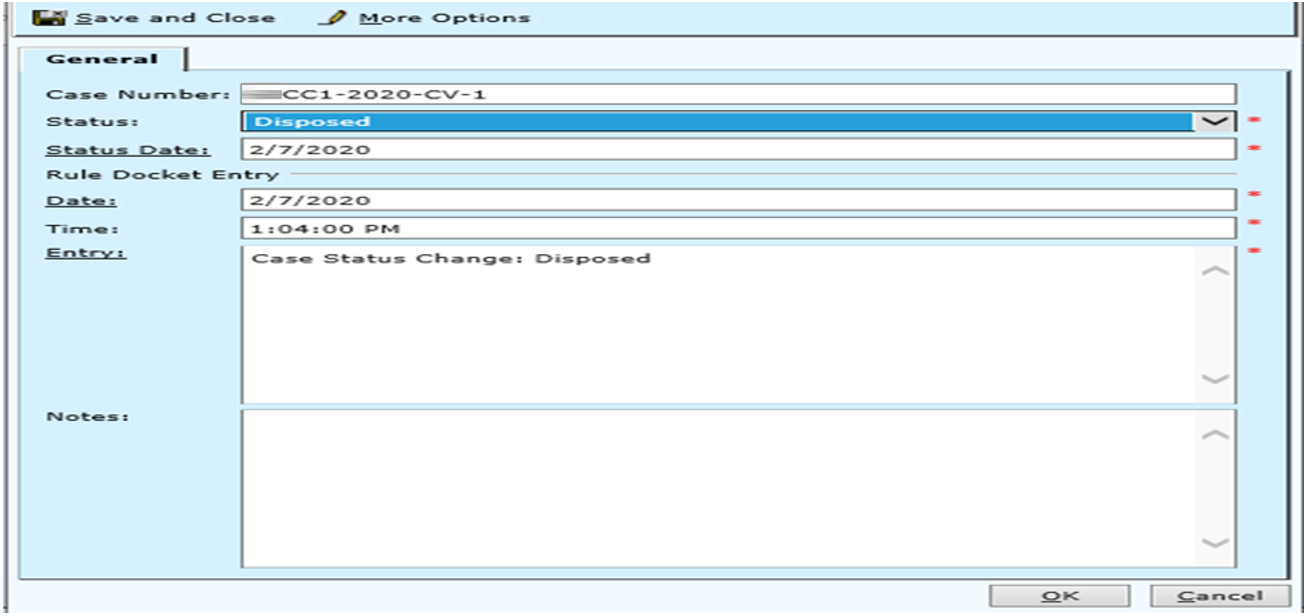 Verify the case status is correct and click OK.
