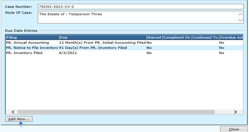 From the ‘Filing Due Date Screen’ click on Add New.